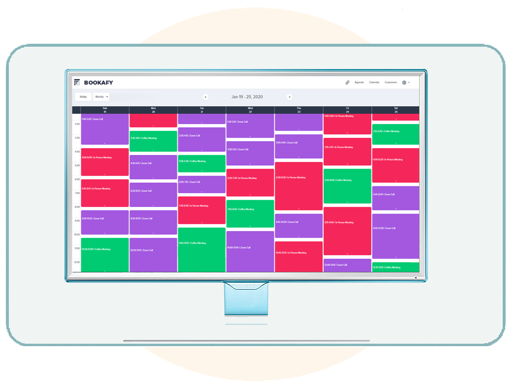 Bookafy allows customers to book appointments online with real time scheduling, calendar syncing, SMS Text reminders, video integrations (zoom, webex, gotomeeting) and a myriad of other features to make your days run smoother.