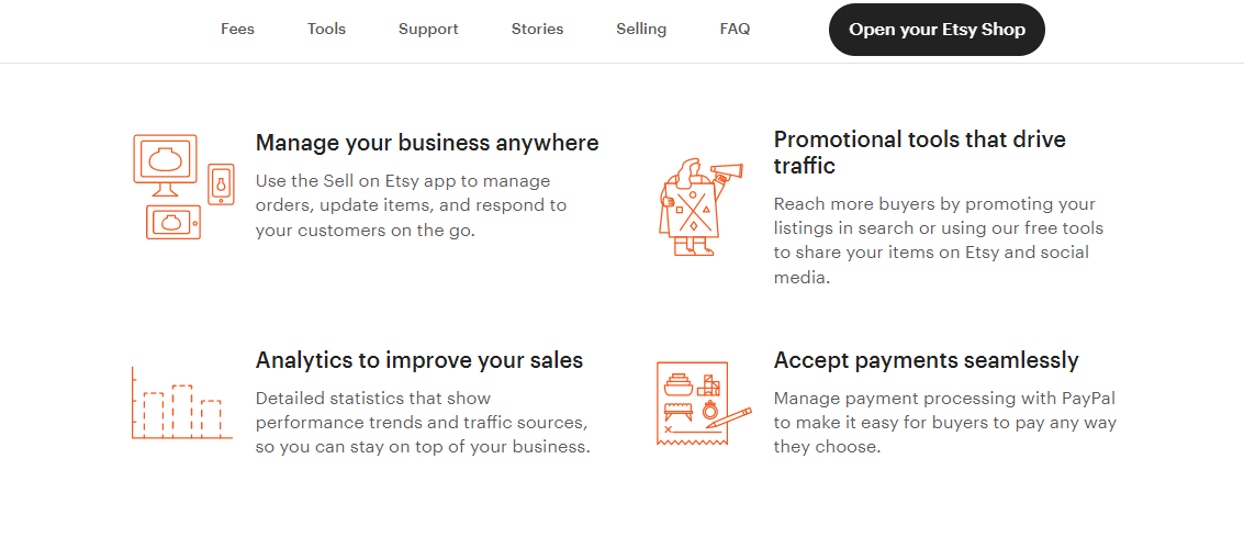 When you visit the platform, you are drawn to Etsy’s whimsical graphical style. It uses a variety of forms, figures, and artifacts to mimic the unique attributes of the things to purchase on the website.