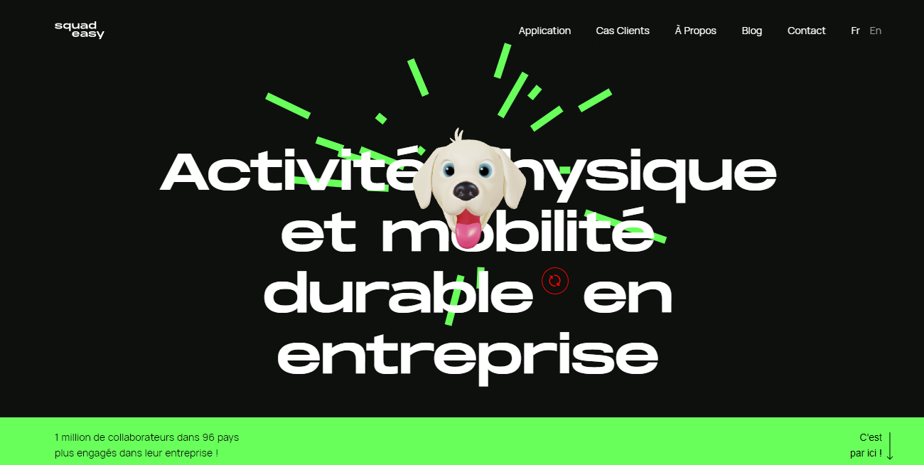 Squadeasy employs an animated 3D dog graphic that moves with you as you browse.