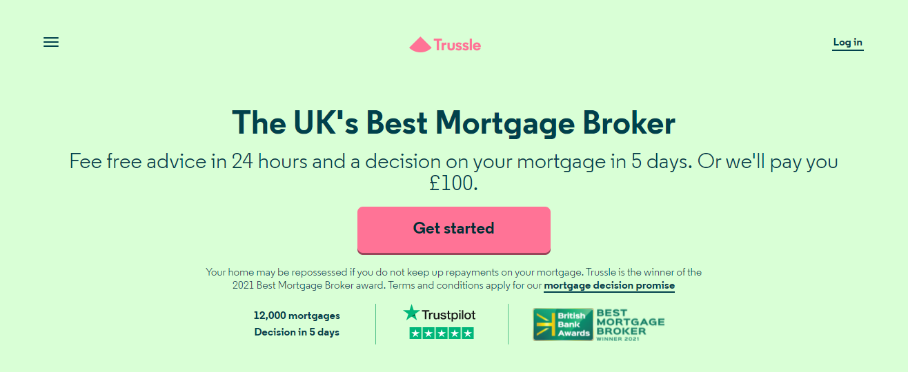 Trussle, an online mortgage broker, strives to attract the attention of youthful home buyers with the very vibrant, easy-to-use homepage, as shown in the example below.