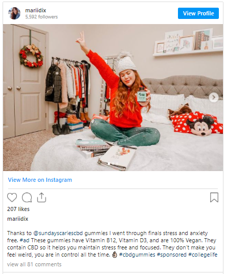 Maria Dix is a nano influencer on Instagram with about 5,500 followers. Her content is highly engaging, convincing her audience to follow her recommendations, such as taking nutritional gummies.