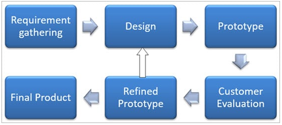 The system developers create a prototype in the requirement phase after which it is evaluated by end-users before developing the actual software.